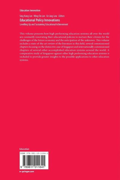 This volume presents how high performing education systems over the world are constantly innovating their educational policies to nurture their citizens for the challenges of the future economy and the anticipation of the unknown. This volume includes a state-of-the-art review of the literature in this field, several commissioned focal chapters focusing on the distinctive case of Singapore and internationally commissioned chapters of several other accomplished education systems around the world. A comparative study of Singapore against other high performing education systems is included to provide greater insights to the possible applications to other education systems.