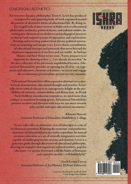 For over two decades, philosopher Tyson E. Lewis has produced an impressive and sprawling body of work organized around the pursuit of alternative forms of educational life. By doing so, he's staged radical interventions in fields such as educational philosophy, aesthetics, political theory, and cultural studies, inventing new theoretical vocabularies and pedagogical practices to disrupt and suspend systems of oppression and exploitation. Reading and rewriting authors from diverse political orientations in surprising and unique ways, Lewis charts constellations of educational concepts and protocols that move beyond the dominant organization of our lives and our world. As Stefano Harney and Fred Moten wrote once, "Lewis prepares us to improvise by showing us how [...] we already do just that." In this first collection of his previously unpublished lectures, Educational Potentialities provides an opening for all of us-as organizers and educators, theorists and artists-to access and engage the revolutionary potentialities present in every moment. ¿¿"¿Educational Potentialities offers expansive alternatives to marketized, deterministic educational thought and practice. Lewis' talks invite critical educators to courageously delight in the possibilities of curiosity, unknowability, and distraction. As Derek Ford's brilliant introduction reminds us, we need more than critique to transform learning spaces; Educational Potentialities presents teachers and theorists with ways we can move towards risky, joyful, and open educational encounters." - Khuram Hussain, Associate Professor of Education, Middlebury College "Lewis' talks offer an alternative view of education as a site of revolutionary potential. Refusing the economic and productive functions of educational practice under capitalism, he instead envisions education as a set of critically imaginative activities capable of challenging racism, sexism, and classism. Lewis is a generous guide through discourses of educational philosophy, drawing on examples that organizers, cultural workers, popular educators-or anyone frustrated with the limits of humanist and capitalist models-will find helpful." - Sarah Louise Cowan, Assistant Professor of Art History, DePauw University