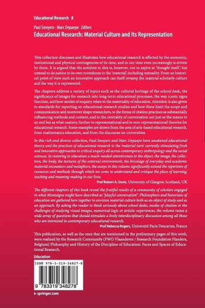 This collection discusses and illustrates how educational research is affected by the economic, institutional and physical contingencies of its time, and in our time even increasingly is driven by them. It is argued that the antidote to this is, however, not to aspire to 'thought itself', but instead to do justice to its own rootedness in the 'material', including textuality. From an historical point of view such an innovative approach can itself revamp the material scholarly culture and the way it is represented. The chapters address a variety of topics such as the cultural heritage of the school desk, the significance of images for research into long-term educational processes, the way iconic signs function, and how modes of enquiry relate to the materiality of education. Attention is also given to standards for reporting on educational research studies and how these limit the scope and communication and moreover shape researchers, to the forms of citation practices as substantially influencing methods and content, and to the centrality of conversation not just as the means to an end but as what matters; further to representational and to non-representational theories for educational research. Some examples are drawn from the area of arts-based educational research, from mathematics education, and from the discourse on universities.