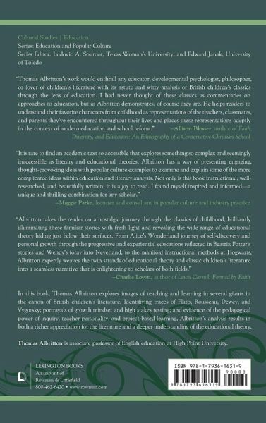 Foreword by the Series Editors Acknowledgments Introduction Chapter 1: Learning Down the Rabbit Hole: Lewis Carroll's Alice Novels as Case Studies of Human Development Chapter 2: Beatrix Potter as a Champion of Progressive Education Chapter 3: The Neverland Academy: Formal Schooling vs. Natural Learning in Peter Pan Chapter 4: The Wind in the Willows and Plato's "Allegory of the Cave" Chapter 5: A Bear of Very Little Brain: Winnie-the-Pooh and Growth Mindset Chapter 6: Always Winter, But Never Christmas: Narnia and High Stakes Testing Chapter 7: How Bilbo Learns: Environmental Inquiry and Reflective Practice in The Hobbit Chapter 8: How Hogwarts Teaches: Identity, Personality, and Instruction Epilogue: Lessons in Literature: What Readers See Through the Lens of Education Bibliography Index About the Author