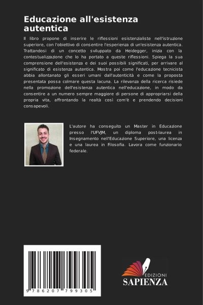 Il libro propone di inserire le riflessioni esistenzialiste nell'istruzione superiore, con l'obiettivo di consentire l'esperienza di un'esistenza autentica. Trattandosi di un concetto sviluppato da Heidegger, inizia con la contestualizzazione che lo ha portato a queste riflessioni. Spiega la sua comprensione dell'esistenza e dei suoi possibili significati, per arrivare al significato di esistenza autentica. Mostra poi come l'educazione tecnicista abbia allontanato gli esseri umani dall'autenticità e come la proposta presentata possa colmare questa lacuna. La rilevanza della ricerca risiede nella promozione dell'esistenza autentica nell'educazione, in modo da consentire a un numero sempre maggiore di persone di appropriarsi della propria vita, affrontando la realtà così com'è e prendendo decisioni consapevoli.