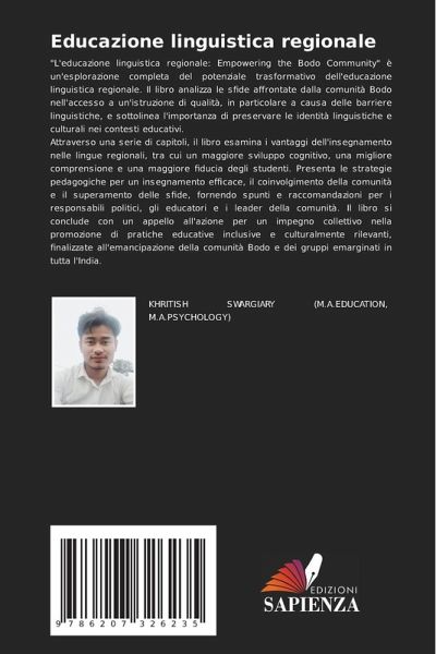 "L'educazione linguistica regionale: Empowering the Bodo Community" è un'esplorazione completa del potenziale trasformativo dell'educazione linguistica regionale. Il libro analizza le sfide affrontate dalla comunità Bodo nell'accesso a un'istruzione di qualità, in particolare a causa delle barriere linguistiche, e sottolinea l'importanza di preservare le identità linguistiche e culturali nei contesti educativi.Attraverso una serie di capitoli, il libro esamina i vantaggi dell'insegnamento nelle lingue regionali, tra cui un maggiore sviluppo cognitivo, una migliore comprensione e una maggiore fiducia degli studenti. Presenta le strategie pedagogiche per un insegnamento efficace, il coinvolgimento della comunità e il superamento delle sfide, fornendo spunti e raccomandazioni per i responsabili politici, gli educatori e i leader della comunità. Il libro si conclude con un appello all'azione per un impegno collettivo nella promozione di pratiche educative inclusive e culturalmente rilevanti, finalizzate all'emancipazione della comunità Bodo e dei gruppi emarginati in tutta l'India.