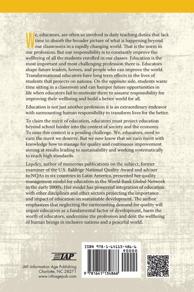 We, educators, are often so involved in daily teaching duties that lack time to absorb the broader picture of what is happening beyond our classrooms in a rapidly changing world. That is the norm in our profession. But our responsibility is to constantly improve the wellbeing of all the students enrolled in our classes. Education is the most important and most challenging profession there is. Educators shape future leaders, heroes, and people who can improve the world. Transformational educators have long term effects in the lives of students that projects on nations. On the opposite side, students waste time sitting in a classroom and can hamper future opportunities in life when educators fail to motivate them to assume responsibility for improving their wellbeing and build a better world for all. Education is not just another profession, it is an extraordinary endeavor with surmounting human responsibility to transform lives for the better. To claim the merit of education, educators must project education beyond school border into the context of society and the economy. To miss this context is a pending challenge. We, educators, need to earn the merit we deserve. But we now know that we earn merit with knowledge how to manage for quality and continuous improvement aiming at results leading to sustainability and working systematically to reach high standards. Lepeley, author of numerous publications on the subject, former examiner of the US Baldrige National Quality Award and adviser to NQAs in six countries in Latin America, presented her quality management model for education in the World Bank Global Network in the early 2000's. Her model has pioneered integration of education with other disciplines and other sectors projecting the importance and impact of education on sustainable development. The author emphasizes that neglecting the surmounting demand for quality will impair education as a fundamental factor of development, harm the worth of educators, undermine the profession and dent the wellbeing of human beings in inclusive nations and a peaceful world.
