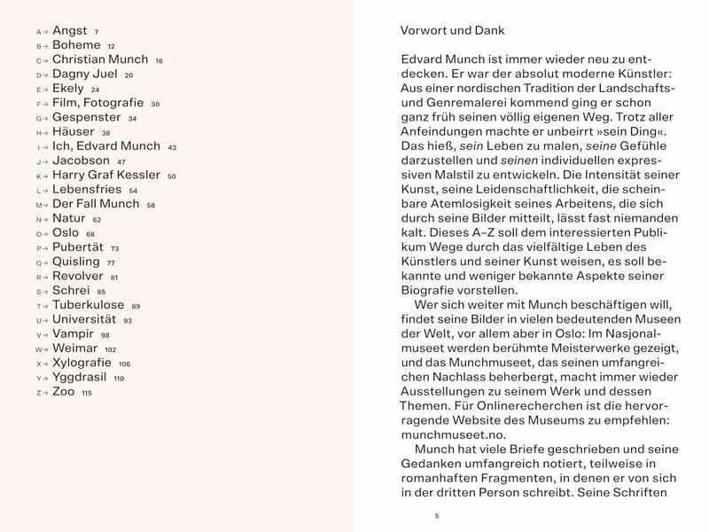 In diesem Band aus der Hatje Cantz Reihe A-Z erkundet der renommierte Autor Ulf Küster Munchs Leben und Werk in 26 Themenkapiteln. Von "Angst" bis "Zoo" zeigt das Buch die persönlichen und universellen Dimensionen von Munchs Kunst und seine Bedeutung für die Moderne. Ein packender Zugang zu einem Künstler, der Emotionen wie kein anderer malte.