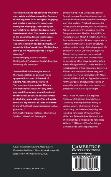 Edward Albee (1928-2016) was a central figure in modern American theatre, and his bold and often experimental theatrical style won him wide acclaim. This book explores the issues, public and private, that so influenced Albee's vision over five decades, from his first great success, The Zoo Story (1959), to his last play, Me, Myself, & I (2008). Matthew Roudané covers all of Albee's original works in this comprehensive, clearly structured, and up-to-date study of the playwright's life and career: in Part I, the volume explores Albee's background and the historical contexts of his work; Part II concentrates on twenty-four of his plays, including Who's Afraid of Virginia Woolf? (1962); and Part III investigates his critical reception. Surveying Albee's relationship with Broadway, and including interviews conducted with Albee himself, this book will be of great importance for theatregoers and students seeking an accessible yet incisive introduction to this extraordinary American playwright.