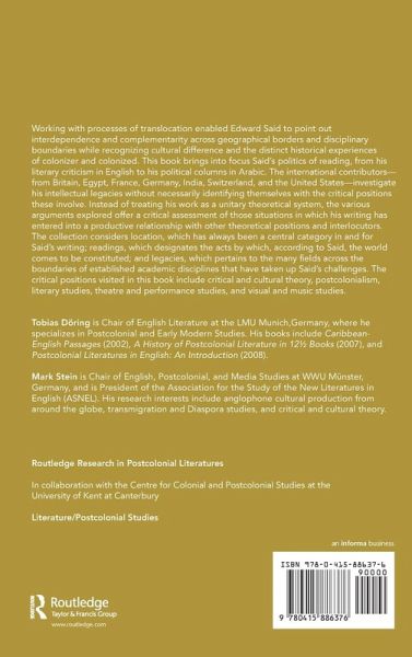 Working with processes of translocation enabled Edward Said to point out interdependence and complementarity across geographical borders and disciplinary boundaries while recognizing cultural difference and the distinct historical experiences of colonizer and colonized. This book brings into focus Said's politics of reading, from his literary criticism in English to his political columns in Arabic. The international contributors-from Britain, Egypt, France, Germany, India, Switzerland, and the United States-investigate his intellectual legacies without necessarily identifying themselves with the critical positions these involve. Instead of treating his work as a unitary theoretical system, the various arguments explored offer a critical assessment of those situations in which his writing has entered into a productive relationship with other theoretical positions and interlocutors. The collection considers location, which has always been a central category in and for Said's writing; readings, which designates the acts by which, according to Said, the world comes to be constituted; and legacies, which pertains to the many fields across the boundaries of established academic disciplines that have taken up Said's challenges. The critical positions visited in this book include critical and cultural theory, postcolonialism, literary studies, theatre and performance studies, and visual and music studies.