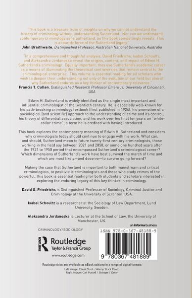 This book explores the contemporary meaning of Edwin Sutherland and considers why criminologists today should continue to engage with his work. Which dimensions of Sutherland's work have best survived the march of time and deseve to survive?