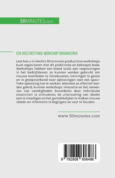 Leer hoe u in slechts 50 minuten productieve workshops kunt organiseren met dit praktische en beknopte boek. Workshops hebben een breed scala aan toepassingen in het bedrijfsleven: ze kunnen worden gebruikt om nieuwe teamleden te introduceren, trainingen te geven en in groepsverband naar oplossingen voor een specifieke oplossing toe te werken. Wanneer ze effectief worden geleid, kunnen workshops innovatie en het verwerven van vaardigheden bevorderen door individuele creativiteit te stimuleren, de uitwisseling van ideeën aan te moedigen en het gemakkelijker te maken nieuwe ideeën en informatie te begrijpen en vast te houden. In dit boek leert u hoe productieve workshops kunnen leiden tot betere training, teambuilding en professionele relaties. Het bevat ook nuttige tips om uw workshop tot in detail te plannen en advies om ervoor te zorgen dat iedereen bijdraagt aan de discussie en gefocust en gemotiveerd blijft, zodat u in een mum van tijd de ideale workshop kunt organiseren!