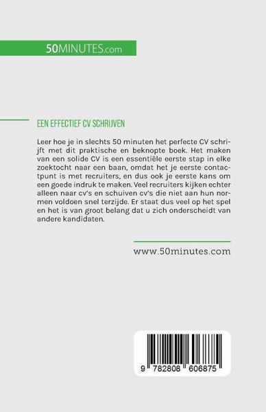 Leer hoe je in slechts 50 minuten het perfecte CV schrijft met dit praktische en beknopte boek. Het maken van een solide CV is een essentiële eerste stap in elke zoektocht naar een baan, omdat het je eerste contactpunt is met recruiters, en dus ook je eerste kans om een goede indruk te maken. Veel recruiters kijken echter alleen naar cv's en schuiven cv's die niet aan hun normen voldoen snel terzijde. Er staat dus veel op het spel en het is van groot belang dat u zich onderscheidt van andere kandidaten. In dit boek leert u waar recruiters op letten als ze een cv doornemen en welke veelgemaakte fouten u ten koste van alles moet vermijden. Het bevat ook een uitleg van de conventionele CV-structuur en tips om uw CV op te poetsen om het dat beetje extra te geven en u op weg te helpen naar succes.