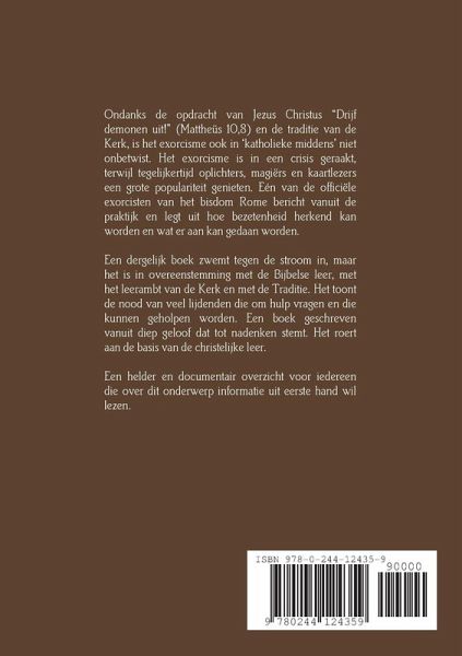 Ondanks de opdracht van Jezus Christus "Drijf demonen uit!" (Mattheüs 10,8) en de traditie van de Kerk, is het exorcisme ook in 'katholieke middens' niet onbetwist. Het exorcisme is in een crisis geraakt, terwijl tegelijkertijd oplichters, magiërs en kaartlezers een grote populariteit genieten. Eén van de officiële exorcisten van het bisdom Rome, Vader Amorth (1925-2016) bericht vanuit de praktijk en legt uit hoe bezetenheid herkend kan worden en wat er aan kan gedaan worden. Een dergelijk boek zwemt tegen de stroom in, maar het is in overeenstemming met de Bijbelse leer, met het leerambt van de Kerk en met de Traditie. Het toont de nood van veel lijdenden die om hulp vragen en die kunnen geholpen worden. Een boek geschreven vanuit diep geloof dat tot nadenken stemt. Het roert aan de basis van de christelijke leer. Een helder en documentair overzicht voor iedereen die in deze vragen informatie uit eerste hand wil lezen.