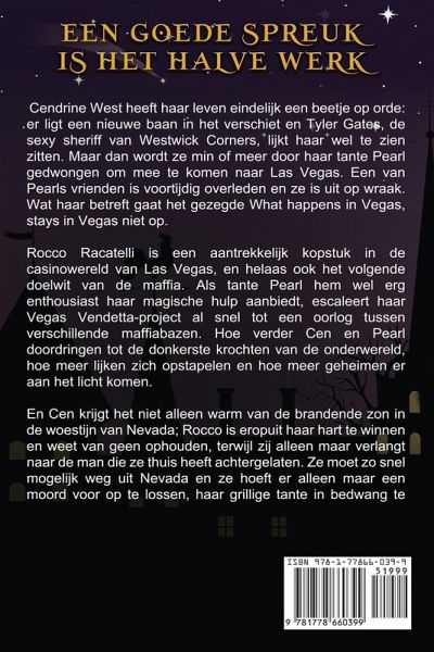 ¿¿¿¿¿ Cendrine West heeft haar leven eindelijk een beetje op orde: er ligt een nieuwe baan in het verschiet en Tyler Gates, de sexy sheriff van Westwick Corners, lijkt haar wel te zien zitten. Maar dan wordt ze min of meer door haar tante Pearl gedwongen om mee te komen naar Las Vegas. Een van Pearls vrienden is voortijdig overleden en ze is uit op wraak. Wat haar betreft gaat het gezegde What happens in Vegas, stays in Vegas niet op. Rocco Racatelli is een aantrekkelijk kopstuk in de casinowereld van Las Vegas, en helaas ook het volgende doelwit van de maffia. Als tante Pearl hem wel erg enthousiast haar magische hulp aanbiedt, escaleert haar Vegas Vendetta-project al snel tot een oorlog tussen verschillende maffiabazen. Hoe verder Cen en Pearl doordringen tot de donkerste krochten van de onderwereld, hoe meer lijken zich opstapelen en hoe meer geheimen er aan het licht komen. En Cen krijgt het niet alleen warm van de brandende zon in de woestijn van Nevada; Rocco is eropuit haar hart te winnen en weet van geen ophouden, terwijl zij alleen maar verlangt naar de man die ze thuis heeft achtergelaten. Ze moet zo snel mogelijk weg uit Nevada en ze hoeft er alleen maar een moord voor op te lossen, haar grillige tante in bedwang te houden en het tegen de maffia van Las Vegas op te nemen. Een eitje, dus... Als georganiseerde misdaad in aanraking komt met ongeorganiseerde heksen, maak je borst dan maar nat. Zal Cen erin slagen alles tot een goed einde te brengen? Je leest het in het tweede deel van de serie 'De heksen van Westwick'.