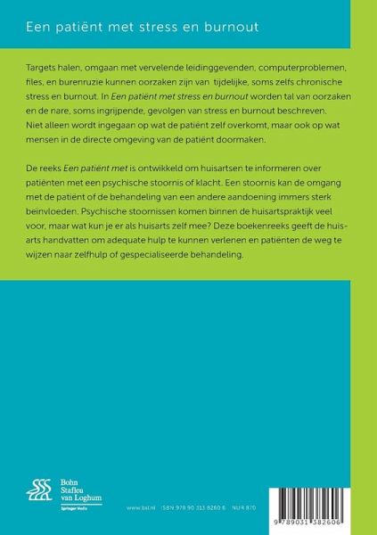 Targets halen, omgaan met vervelende leidinggevenden, computerproblemen, files, en burenruzie kunnen oorzaken zijn van tijdelijke, soms zelfs chronische, stress en burnout. In Een patiënt met stress en burnout worden tal van oorzaken en de nare, soms ingrijpende, gevolgen van stress en burnout beschreven. Niet alleen wordt ingegaan op wat de patiënt zelf overkomt, maar ook op wat mensen in de directe omgeving van de patiënt doormaken.Een patiënt met is ontwikkeld om huisartsen te informeren over patiënten met een psychische stoornis of klacht. Een stoornis kan de omgang met de patiënt of de behandeling van een andere aandoening immers sterk beïnvloeden. Psychische stoornissen komen binnen de huisartspraktijk veel voor, maar wat kun je er als huisarts zelf mee? Deze boekenreeks geeft de huisarts handvatten om adequate hulp te kunnen verlenen en patiënten de weg te wijzen naar zelfhulp of gespecialiseerde behandeling.