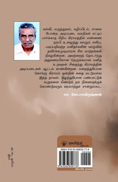 In a village where basic amenities like education, medicine, roads and drainage haven't made their marks yet, the lives of the poor, uneducated people who live by placing their trust on the land, go through a drastic change. Following that, the close links between the people and the very foundation of the village, are shattered. This novel is not just the story of a lost village in the Kongu region of western Tamil Nadu. It is also a historical document that reminds us of lost cultural elements.
