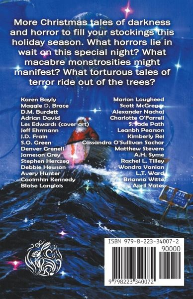 Supporting the BLACK DOG INSTITUTE More Christmas tales of darkness and horror to fill your stockings this holiday season. What horrors lie in wait on this special night? What macabre monstrosities might manifest? What terrible things ride out of the trees? Cover Art by Les Edwards A Gift from Krampus by Karen Bayly Away in a Manger by Adrian David & Debbie Hewson Dear Slavic Santa by Avery Hunter Devil of a Deal by J.D. Frain Eleven Month Utero by Caoimhin Kennedy Fallen Miracle by Rachel L. Tilley Festive Takings by Jameson Grey Here We Come a-Wassailing by Kimberly Rei Home for the Holidays by Jeff Ehrmann Hungry Christmas by Cassandra O'Sullivan Sachar Mother Christmas by L.T. Ward Nine Ladies Dancing by D.M. Burdett Rosey Ruby by Alexander Nachaj Snow on Snow by Charlotte O'Farrell Spelling Counts by Blaise Langlois Spirits of the Season by S. Jade Path The Cost of Christmas by S.O. Green The Naughty List by Marion Lougheed The Very Good Pupil by A.H. Syme The Yule Trolls by Leanbh Pearson Tiny Tots All Aglow by Wondra Vanian Tis the Season by Brianna Witte Treasured Traditions by April Yates Two Cloven Hooves by Matthew Stevens Ulee the Unicorn by Maggie D. Brace We Don't Celebrate Christmas Here by Stephen Herczeg Welcome to Aberdeen by Scott McGregor Wish I May by Denver Grenell