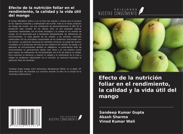 El mango (Mangifera indica L.) es la fruta más popular y selecta que se produce en las regiones tropicales y subtropicales del mundo. India es el mayor productor de mango del mundo, con una contribución de aproximadamente el 50% de la producción total mundial. En los últimos años se han planteado algunas cuestiones relacionadas con el estrés fisiológico y la calidad en los huertos de mango. Se ha observado que la fertilización desequilibrada, las deficiencias de micronutrientes, la mala gestión de los árboles y las prácticas culturales inadecuadas son los principales responsables de los problemas relacionados con los huertos. La aplicación exclusiva de nutrientes primarios no puede dar buenos resultados en la producción de fruta de alta calidad en los árboles de mango y la aplicación de micronutrientes también es obligatoria. La pulverización foliar de micronutrientes es generalmente rápida, más eficaz y es una práctica común para superar las deficiencias de micronutrientes con el fin de mejorar la calidad. Para aumentar la eficiencia y mejorar la calidad y el rendimiento de la fruta y mitigar los problemas relacionados con la nutrición, es necesario improvisar la aplicación foliar de nutrientes.
