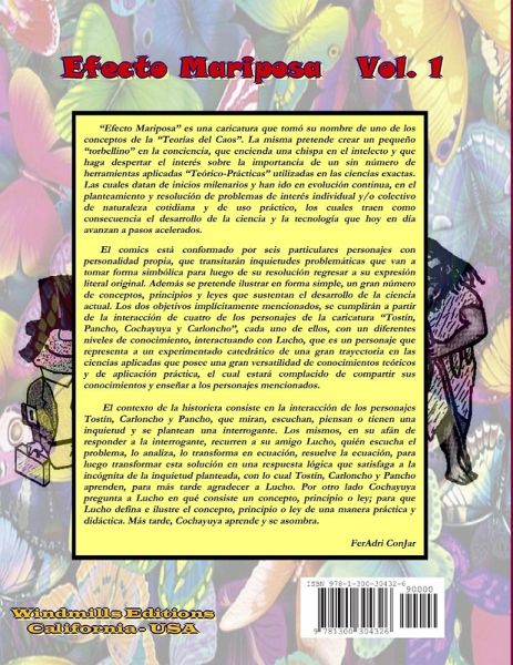 "Efecto Mariposa" es una caricatura que tomó su nombre de uno de los conceptos de la "Teorías del Caos". La misma pretende crear un pequeño "torbellino" en la conciencia, que encienda una chispa en el intelecto y que haga despertar el interés sobre la importancia de un sin número de herramientas aplicadas "Teórico-Prácticas" utilizadas en las ciencias exactas. Las cuales datan de inicios milenarios y han ido en evolución continua, en el planteamiento y resolución de problemas de interés individual y/o colectivo de naturaleza cotidiana y de uso práctico, los cuales traen como consecuencia el desarrollo de la ciencia y la tecnología que hoy en día avanzan a pasos acelerados. El comics está conformado por seis particulares personajes con personalidad propia, que transitarán inquietudes problemáticas que van a tomar forma simbólica para luego de su resolución regresar a su expresión literal original.