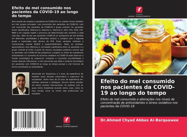 Este estudo diz respeito à pandemia da COVID-19 e os sujeitos foram divididos em três grupos principais: mel consumido dos pacientes da COVID-19, sem mel consumido dos pacientes da COVID-19 e grupo controle. Os pacientes foram identificados (Vitamina A, Vitamina C, Vitamina E, GSH, GPx, SOD, CAT, MDA) e em seguida repetir o processo de determinação das variáveis a cada sete dias. Além de dar aos pacientes COVID-19 um quilograma de mel dividido em diferentes quantidades e diferentes tempos e compere com o segundo grupo e examinado pela técnica de PCR. Estas variáveis mediram a concentração usando (ELISA) e espectrofotômetro. Todas as variáveis apresentaram uma diferença e correlação significativa entre os pacientes e o grupo controle (p¿0.05). A partir de nossos resultados podemos concluir que os pacientes com COVID-19 são propensos a esgotar os níveis de substâncias antioxidantes e o aumento do estresse oxidativo na COVID-19 pode distorcer a função imunológica do organismo, enquanto a crescente suscetibilidade a outras doenças infecciosas, o mel consumido que afeta o sistema imunológico em pacientes com COVID-19 ao longo do tempo porque o mel funciona de forma semelhante ao antioxidante.