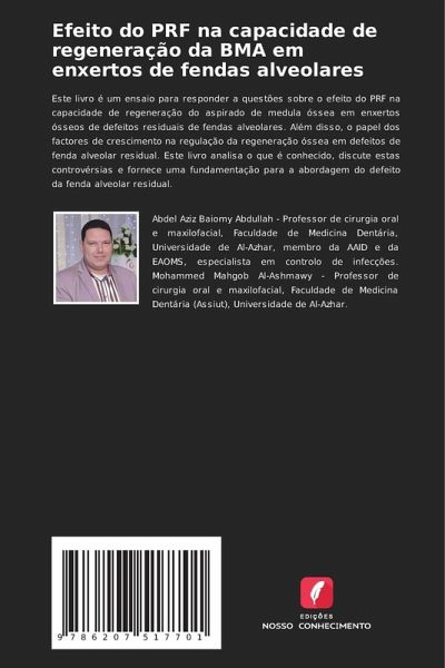 Este livro é um ensaio para responder a questões sobre o efeito do PRF na capacidade de regeneração do aspirado de medula óssea em enxertos ósseos de defeitos residuais de fendas alveolares. Além disso, o papel dos factores de crescimento na regulação da regeneração óssea em defeitos de fenda alveolar residual. Este livro analisa o que é conhecido, discute estas controvérsias e fornece uma fundamentação para a abordagem do defeito da fenda alveolar residual.