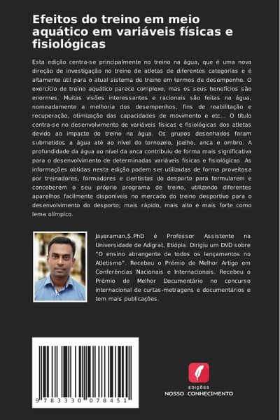 Esta edição centra-se principalmente no treino na água, que é uma nova direção de investigação no treino de atletas de diferentes categorias e é altamente útil para o atual sistema de treino em termos de desempenho. O exercício de treino aquático parece complexo, mas os seus benefícios são enormes. Muitas visões interessantes e racionais são feitas na água, nomeadamente a melhoria dos desempenhos, fins de reabilitação e recuperação, otimização das capacidades de movimento e etc... O título centra-se no desenvolvimento de variáveis físicas e fisiológicas dos atletas devido ao impacto do treino na água. Os grupos desenhados foram submetidos a água até ao nível do tornozelo, joelho, anca e ombro. A profundidade da água ao nível da anca contribuiu de forma mais significativa para o desenvolvimento de determinadas variáveis físicas e fisiológicas. As informações obtidas nesta edição podem ser utilizadas de forma proveitosa por treinadores, formadores e cientistas do desporto para formularem e conceberem o seu próprio programa de treino, utilizando diferentes aparelhos facilmente disponíveis no mercado do treino desportivo para o desenvolvimento do desporto; mais rápido, mais alto e mais forte como lema olímpico.
