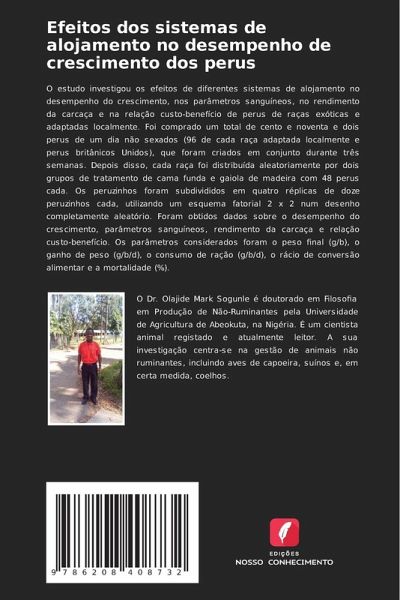 O estudo investigou os efeitos de diferentes sistemas de alojamento no desempenho do crescimento, nos parâmetros sanguíneos, no rendimento da carcaça e na relação custo-benefício de perus de raças exóticas e adaptadas localmente. Foi comprado um total de cento e noventa e dois perus de um dia não sexados (96 de cada raça adaptada localmente e perus britânicos Unidos), que foram criados em conjunto durante três semanas. Depois disso, cada raça foi distribuída aleatoriamente por dois grupos de tratamento de cama funda e gaiola de madeira com 48 perus cada. Os peruzinhos foram subdivididos em quatro réplicas de doze peruzinhos cada, utilizando um esquema fatorial 2 x 2 num desenho completamente aleatório. Foram obtidos dados sobre o desempenho do crescimento, parâmetros sanguíneos, rendimento da carcaça e relação custo-benefício. Os parâmetros considerados foram o peso final (g/b), o ganho de peso (g/b/d), o consumo de ração (g/b/d), o rácio de conversão alimentar e a mortalidade (%).
