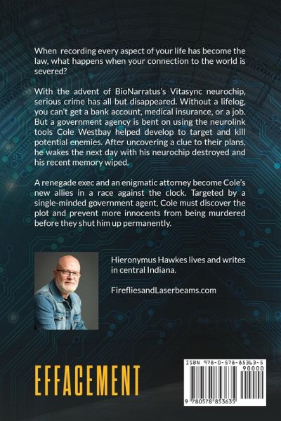 In the future, serious crime has all but disappeared. With the advent of BioNarratus's Vitasync neurochip, recording every aspect of your life has become the law. Without it you can't get a bank account, medical insurance, or a job. Unbeknownst to Cole Westbay, a government agency is bent on using the neurolink tools he helped develop to target and kill potential enemies. But before Cole can act, he wakes with his neurochip destroyed and his recent memory wiped. Now the centerpiece of a government conspiracy, he's on the run trying to solve the mystery before they shut him up permanently. In a fight against the clock a renegade caretaker and an enigmatic attorney become his new allies. With their help he tries to discover why he's being targeted by a single-minded government agent and stop more innocents from being murdered.