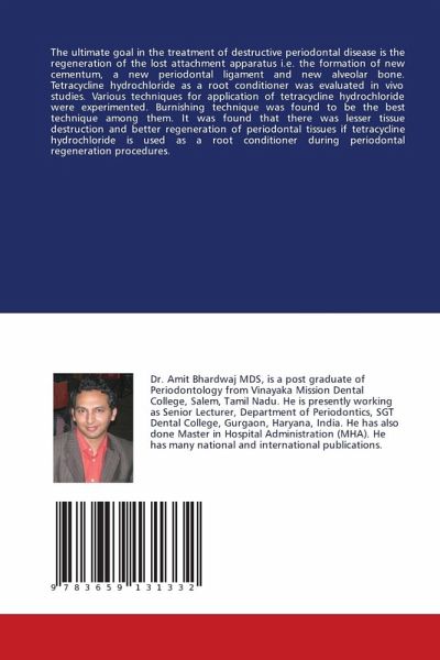 The ultimate goal in the treatment of destructive periodontal disease is the regeneration of the lost attachment apparatus i.e. the formation of new cementum, a new periodontal ligament and new alveolar bone. Tetracycline hydrochloride as a root conditioner was evaluated in vivo studies. Various techniques for application of tetracycline hydrochloride were experimented. Burnishing technique was found to be the best technique among them. It was found that there was lesser tissue destruction and better regeneration of periodontal tissues if tetracycline hydrochloride is used as a root conditioner during periodontal regeneration procedures.
