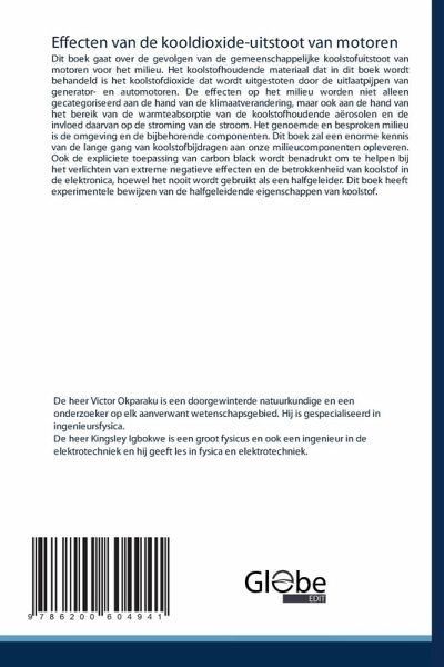 Dit boek gaat over de gevolgen van de gemeenschappelijke koolstofuitstoot van motoren voor het milieu. Het koolstofhoudende materiaal dat in dit boek wordt behandeld is het koolstofdioxide dat wordt uitgestoten door de uitlaatpijpen van generator- en automotoren. De effecten op het milieu worden niet alleen gecategoriseerd aan de hand van de klimaatverandering, maar ook aan de hand van het bereik van de warmteabsorptie van de koolstofhoudende aërosolen en de invloed daarvan op de stroming van de stroom. Het genoemde en besproken milieu is de omgeving en de bijbehorende componenten. Dit boek zal een enorme kennis van de lange gang van koolstofbijdragen aan onze milieucomponenten opleveren. Ook de expliciete toepassing van carbon black wordt benadrukt om te helpen bij het verlichten van extreme negatieve effecten en de betrokkenheid van koolstof in de elektronica, hoewel het nooit wordt gebruikt als een halfgeleider. Dit boek heeft experimentele bewijzen van de halfgeleidende eigenschappen van koolstof.