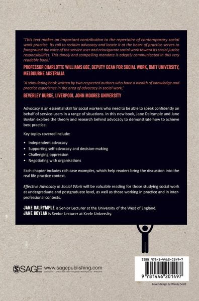 Advocacy is an essential skill for social workers who need to be able to speak confidently on behalf of service-users in a range of situations. In this new book, Jane Dalrymple and Jane Boylan explore the theory and research behind advocacy and draw on a range of case studies to demonstrate how to achieve best practice.