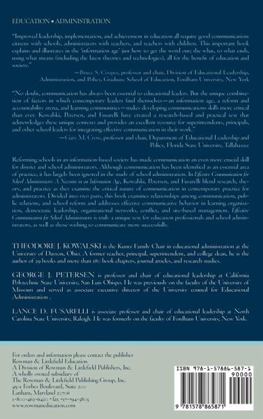 In Effective Communication for School Administrators: A Necessity in an Information Age the authors blend research, theory, and practice as they examine the critical nature of communication in contemporary practice for administrators. Divided into two parts, it examines relationships among communication, public relations, and school reform and addresses effective communicative behavior in relation to learning organization, democratic leadership, organizational networks, conflict, positive relationships, and site-based management.