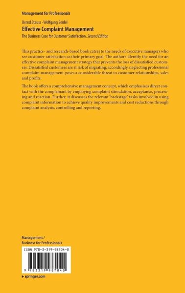 This practice- and research-based book caters to the needs of executive managers who see customer satisfaction as their primary goal. The authors identify the need for an effective complaint management strategy that prevents the loss of dissatisfied customers. Dissatisfied customers are at risk of migrating; accordingly, neglecting professional complaint management poses a considerable threat to customer relationships, sales and profits.