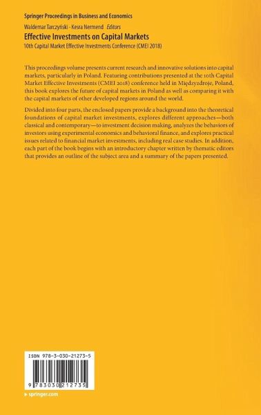 This proceedings volume presents current research and innovative solutions into capital markets, particularly in Poland. Featuring contributions presented at the 10th Capital Market Effective Investments (CMEI 2018) conference held in Miedzyzdroje, Poland, this book explores the future of capital markets in Poland as well as comparing it with the capital markets of other developed regions around the world.