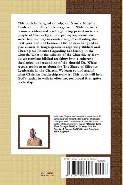 This book is designed to help, aid & assist Kingdom Leaders in fulfilling their assignment. With so many erroneous ideas and teachings being passed on to the people of God as legitimate principles, seems like we've lost our way in constructing & cultivating the next generation of Leaders. This book is designed to give answer to tough questions regarding Biblical and Theological Themes Regarding Leadership in the Church. What is the mission of the Church?, or How do we translate biblical teachings into a coherent theological understanding of the church? Pastor White reveals truths to us about the The Shape of Effective Leadership in the Church. We learn to understand what Christian Leadership really is. This book will help God's leader to walk in effective, reciprocal & adaptive leadership.