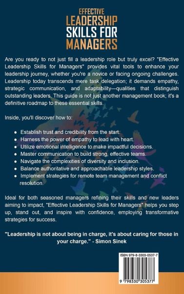 *Unleash Your Leadership Potential: Unlock Success in 30 Days* Have you transitioned from team member to team leader and are struggling with the power shift? Or perhaps you're a leader feeling like you're walking a tightrope, balancing targets and team harmony? You're not alone. Modern leadership demands more than delegation and authority; it requires empathy, communication, diversity management, and adaptability. Unfortunately, most training programs offer shallow advice instead of actionable steps. Imagine a fail-proof roadmap to transform you into a confident, empathetic, and influential leader. This book provides just that! *Here's a glimpse of what you'll discover: * - 4 key strategies to build trust and credibility as a new manager.- Your personal leadership style: 3 types and how to leverage them.- Empathy 101: Lead with heart, not just authority.- Cultivating high emotional intelligence for leadership success.- 4 essential communication techniques for stronger relationships.- Building a winning team with diverse strengths.- Fostering a culture of continuous improvement.- A roadmap to giving effective feedback.- Using praise and rewards to motivate your team.- 4 ways to lead by example and instill a strong work ethic.- Handling workplace conflicts with diplomacy.- The secret of effective delegation.- Leading successful remote teams in the digital age.- Mastering leadership amid change and uncertainty.- Promoting inclusivity and diversity in the workplace.- Maintaining work-life balance while leading.- Building a legacy and inspiring lasting change. Leadership isn't about innate charisma or years of experience; it's about learning, adapting, and empowering others. This book breaks down leadership into essential skills and principles, crafting a complete picture of effective leadership. Step into your leadership role with confidence and make a lasting impact. This book is your guide to becoming a better leader, starting today.