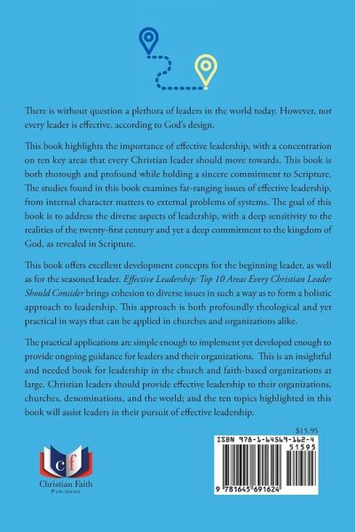 There is without question a plethora of leaders in the world today. However, not every leader is effective, according to God's design. This book highlights the importance of effective leadership, with a concentration on ten key areas that every Christian leader should move towards. This book is both thorough and profound while holding a sincere commitment to Scripture. The studies found in this book examines far-ranging issues of effective leadership, from internal character matters to external problems of systems. The goal of this book is to address the diverse aspects of leadership, with a deep sensitivity to the realities of the twenty-first century and yet a deep commitment to the kingdom of God, as revealed in Scripture. This book offers excellent development concepts for the beginning leader, as well as for the seasoned leader. Effective Leadership: Top 10 Areas Every Christian Leader Should Consider brings cohesion to diverse issues in such a way as to form a holistic approach to leadership. This approach is both profoundly theological and yet practical in ways that can be applied in churches and organizations alike. The practical applications are simple enough to implement yet developed enough to provide ongoing guidance for leaders and their organizations. This is an insightful and needed book for leadership in the church and faith-based organizations at large. Christian leaders should provide effective leadership to their organizations, churches, denominations, and the world; and the ten topics highlighted in this book will assist leaders in their pursuit of effective leadership.