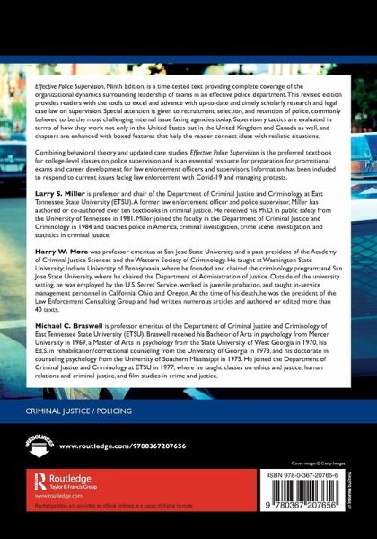 Effective Police Supervision, 9th ed., is a time-tested text providing complete coverage of the organizational dynamics surrounding leadership of teams in an effective police department. This revised edition provides readers with the tools to excel and advance with up-to-date and timely scholarly research and legal case law on supervision. Special attention is given to recruitment, selection, and retention of police, commonly believed to be the most challenging internal issue facing agencies today. Supervisory tactics are evaluated in terms of how they work not only in the United States but in the United Kingdom and Canada as well, and chapters are enhanced with boxed features that help the reader connect ideas with realistic situations. Combining behavioral theory and updated case studies, Effective Police Supervision is the preferred textbook for college-level classes on police supervision and is an essential resource for preparation for promotional exams and career development for law enforcement officers and supervisors. Information has been included to respond to current issues facing law enforcement with Covid-19 and managing protests.