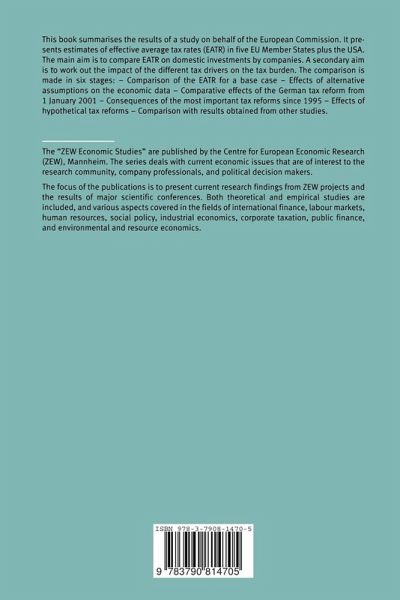 Our small book presents areport which has been prepared in the year 2000 for the Taxation and Custorns Union Directorate General of the European Commission, under contract no. T AXUD / 00 / 312. Some of the results form part of the report "Company Taxation in the Internal Market" of the Commission Services released in autumn 2001. We present estimates of effective average tax rates (EATR) in five EU Member States (France, Germany, Ireland, the Netherlands and the UK) plus the USA based on the European Tax Analyzer approach. The European Tax Analyzer is a computer based model firm approach for the computation and comparison of international company tax burdens. It has been developed in co-operation with the Centre for European Economic Research (ZEW). We would like to thank the ZEW for this co-operation. Furthermore, we gratefully acknowledge the help and advice of Gerd Gutekunst, Rieo A. Hermann and Thorsten Stetter in preparing the report. Special mention must be made of Gerd Gutekunst, who was also responsible for preparing the printed version of this report.