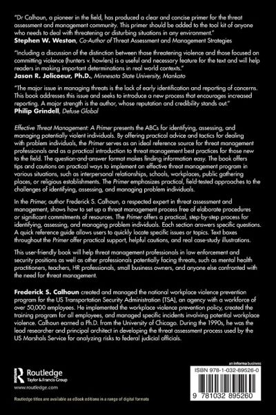 Effective Threat Management: A Primer presents the ABCs for identifying, assessing, and managing potentially violent individuals. By offering practical advice and tactics for dealing with problem individuals, the Primer serves as an ideal reference source for threat management professionals and as a practical introduction to threat management best practices for those new to the field. The question-and-answer format makes finding information easy. The book offers tips and cautions on practical ways to implement an effective threat management program in various situations, such as interpersonal relationships, schools, workplaces, public gathering places, or religious establishments. The Primer emphasizes practical, field-tested approaches to the challenges of identifying, assessing, and managing problem individuals.