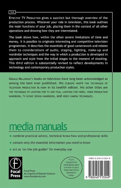 Effective TV Production gives a succinct but thorough overview of the production process. Whatever your role in television, this book outlines the main functions of your job, placing them in the context of all other operations and showing how they are interrelated. The book shows how, within the often severe limitations of time and money, it is possible to originate interesting and competitive television programmes. It describes the essentials of good camerawork and relates them to considerations of audio, staging, lighting, make-up and wardrobe techniques and the way in which a production is developed in approach and style form the initial stages to the moment of shooting. This edition is substantially revised to reflect developments in technology and contemporary production styles.Gerald Millerson'd books on television have long been acknowledged as among the best ever published.