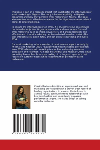 This book is part of a research project that investigates the effectiveness of email marketing in Nigeria. The study is focused explicitly on Nigerian consumers and how they perceive email marketing in Nigeria. The book also examines what effectiveness means for the Nigerian consumer when it comes to email marketing.To ensure the effectiveness of an email, it is crucial to focus on achieving the intended objective. Organizations and brands use various forms of email marketing, such as emails, newsletters, and announcements. The effectiveness of email marketing can be evaluated based on metrics like click-through rates, opt-in rates, and opt-out rates (Zirthang and Rudra, 2014).For email marketing to be successful, it must have an impact. A study by Khedkar and Khedkar (2021) revealed that most marketing professionals (over 80%) believe email marketing is a tool for enhancing customer persuasion and retention. As noted by Khedkar and Khedkar (2021), email marketing has evolved from mass mailings to a targeted approach that focuses on customer needs while respecting their permission-based preferences.