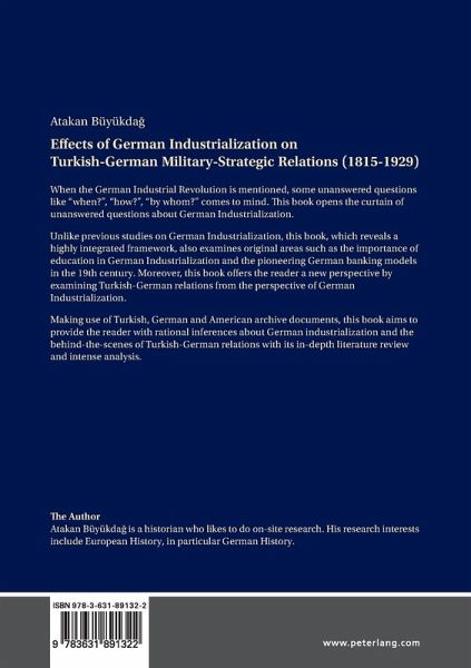 When the German Industrial Revolution is mentioned, some unanswered questions like "when?", "how?", "by whom?" comes to mind. This book opens the curtain of unanswered questions about German Industrialization. Unlike previous studies on German Industrialization, this book, which reveals a highly integrated framework, also examines original areas such as the importance of education in German Industrialization and the pioneering German banking models in the 19th century. Moreover, this book offers the reader a new perspective by examining Turkish-German relations from the perspective of German Industrialization. Making use of Turkish, German and American archive documents, this book aims to provide the reader with rational inferences about German industrialization and the behind-the-scenes of Turkish-German relations with its in-depth literature review and intense analysis.