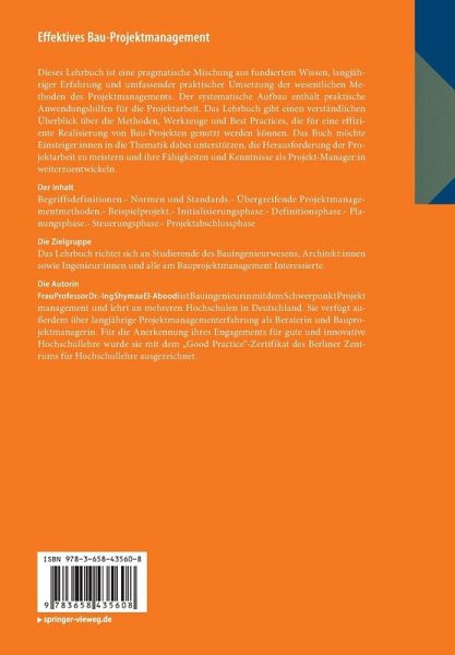 Dieses Lehrbuch ist eine pragmatische Mischung aus fundiertem Wissen, langjähriger Erfahrung und umfassender praktischer Umsetzung der wesentlichen Methoden des Projektmanagements. Der systematische Aufbau enthält praktische Anwendungshilfen für die Projektarbeit. Das Lehrbuch gibt einen verständlichen Überblick über die Methoden, Werkzeuge und Best Practices, die für eine effiziente Realisierung von Bau-Projekten genutzt werden können. Das Buch möchte Einsteiger:innen in die Thematik dabei unterstützen, die Herausforderung der Projektarbeit zu meistern und ihre Fähigkeiten und Kenntnisse als Projekt-Manager:in weiterzuentwickeln.