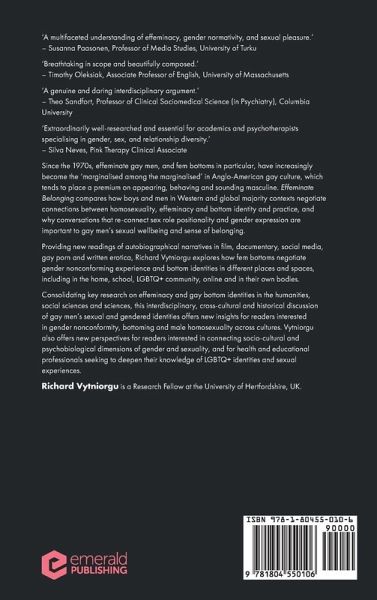 Richard Vytniorgu compares how boys and men in Western and global majority contexts negotiate connections between homosexuality, effeminacy, and bottom identity and practice, and why conversations that re-connect sex role positionality and gender expression are important to gay menâ s sexual wellbeing and sense of belonging.