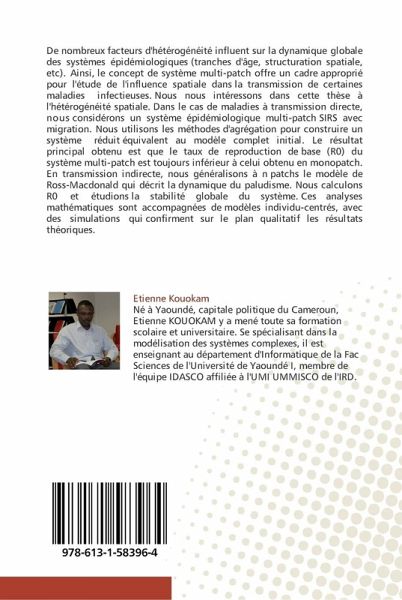 De nombreux facteurs d'hétérogénéité influent sur la dynamique globale des systèmes épidémiologiques (tranches d'âge, structuration spatiale, etc). Ainsi, le concept de système multi-patch offre un cadre approprié pour l'étude de l'influence spatiale dans la transmission de certaines maladies infectieuses. Nous nous intéressons dans cette thèse à l'hétérogénéité spatiale. Dans le cas de maladies à transmission directe, nous considérons un système épidémiologique multi-patch SIRS avec migration. Nous utilisons les méthodes d'agrégation pour construire un système réduit équivalent au modèle complet initial. Le résultat principal obtenu est que le taux de reproduction de base (R0) du système multi-patch est toujours inférieur à celui obtenu en monopatch. En transmission indirecte, nous généralisons à n patchs le modèle de Ross-Macdonald qui décrit la dynamique du paludisme. Nous calculons R0 et étudions la stabilité globale du système. Ces analyses mathématiques sont accompagnées de modèles individu-centrés, avec des simulations qui confirment sur le plan qualitatif les résultats théoriques.