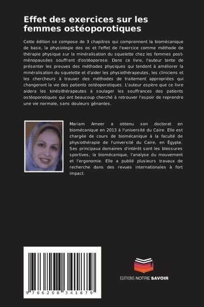 Cette édition se compose de 3 chapitres qui comprennent la biomécanique de base, la physiologie des os et l'effet de l'exercice comme méthode de thérapie physique sur la minéralisation du squelette chez les femmes post-ménopausées souffrant d'ostéoporose. Dans ce livre, l'auteur tente de présenter les preuves des méthodes physiques qui tendent à améliorer la minéralisation du squelette et d'aider les physiothérapeutes, les cliniciens et les chercheurs à trouver des méthodes de traitement appropriées qui changeront la vie des patients ostéoporotiques. L'auteur espère que ce livre aidera les kinésithérapeutes à soulager les souffrances des patients ostéoporotiques qui ont beaucoup cherché à retrouver l'espoir de reprendre une vie normale, sans douleurs gênantes.