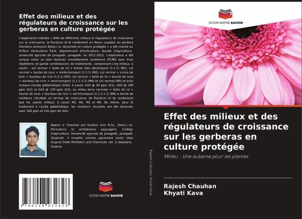 L'expérience intitulée « Effet de différents milieux et régulateurs de croissance sur la croissance, la floraison et le rendement en fleurs coupées du gerbera (Gerbera jamesonii Bolus) cv. Alcochete en culture protégée » a été menée au Hi-Tech Horticulture Park, département d'horticulture, faculté d'agriculture, université agricole de Junagadh, Junagadh, en 2011-2012. L'expérience a été conçue selon un plan factoriel complètement randomisé (FCRD) avec trois répétitions et quinze combinaisons de traitements, comprenant cinq milieux, à savoir : sol normal + balle de riz + fumier bien décomposé (1:1:1) (M1), sol normal + tourbe de coco + lombricompost (1:1:1) (M2), sol normal + sciure de bois + tourteau de ricin (1:1:1) (M3), sol normal + balle de riz + tourbe de coco + tourteau de ricin + vermicompost (1:1:1:1:1) (M4) et sol normal (M5) et trois niveaux d'acide gibbérellique (GA3), à savoir GA3 @ 50 ppm (G1), GA3 @ 100 ppm (G2) et GA3 @ 150 ppm (G3). Le milieu terre normale + balle de riz + tourbe de coco + tourteau de ricin + vermicompost (1:1:1:1:1) (M4) a donné de meilleurs résultats en termes de croissance, de floraison et de rendement que les autres milieux, à savoir M1, M2, M3 et M5. De même, pour le traitement à l'acide gibbérellique, les meilleurs résultats ont été observés avec 100 ppm et 150 ppm de GA3.