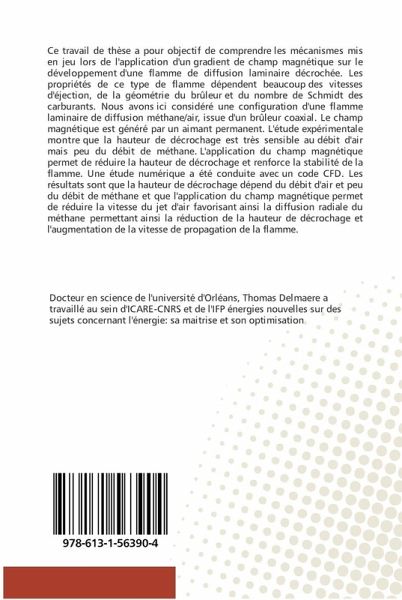 Ce travail de thèse a pour objectif de comprendre les mécanismes mis en jeu lors de l'application d'un gradient de champ magnétique sur le développement d'une flamme de diffusion laminaire décrochée. Les propriétés de ce type de flamme dépendent beaucoup des vitesses d'éjection, de la géométrie du brûleur et du nombre de Schmidt des carburants. Nous avons ici considéré une configuration d'une flamme laminaire de diffusion méthane/air, issue d'un brûleur coaxial. Le champ magnétique est généré par un aimant permanent. L'étude expérimentale montre que la hauteur de décrochage est très sensible au débit d'air mais peu du débit de méthane. L'application du champ magnétique permet de réduire la hauteur de décrochage et renforce la stabilité de la flamme. Une étude numérique a été conduite avec un code CFD. Les résultats sont que la hauteur de décrochage dépend du débit d'air et peu du débit de méthane et que l'application du champ magnétique permet de réduire la vitesse du jet d'air favorisant ainsi la diffusion radiale du méthane permettant ainsi la réduction de la hauteur de décrochage et l'augmentation de la vitesse de propagation de la flamme.