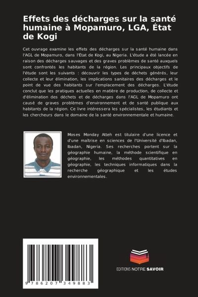 Cet ouvrage examine les effets des décharges sur la santé humaine dans l'AGL de Mopamuro, dans l'État de Kogi, au Nigeria. L'étude a été lancée en raison des décharges sauvages et des graves problèmes de santé auxquels sont confrontés les habitants de la région. Les principaux objectifs de l'étude sont les suivants : découvrir les types de déchets générés, leur collecte et leur élimination, les implications sanitaires des décharges et le point de vue des habitants sur l'emplacement des décharges. L'étude conclut que les pratiques actuelles en matière de production, de collecte et d'élimination des déchets et de décharges dans l'AGL de Mopamuro ont causé de graves problèmes d'environnement et de santé publique aux habitants de la région. Ce livre intéressera les spécialistes, les étudiants et les chercheurs dans le domaine de la santé environnementale et humaine.