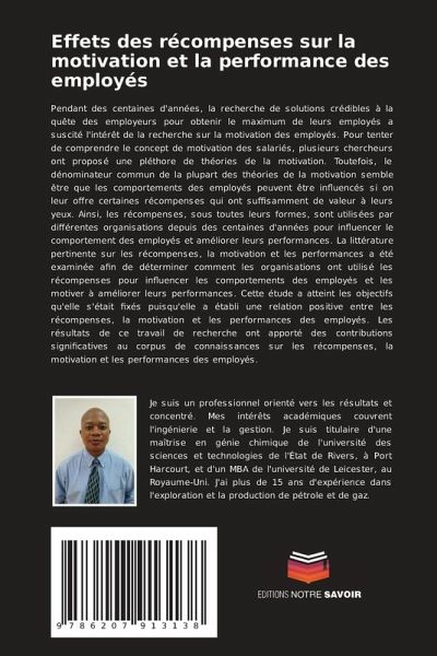Pendant des centaines d'années, la recherche de solutions crédibles à la quête des employeurs pour obtenir le maximum de leurs employés a suscité l'intérêt de la recherche sur la motivation des employés. Pour tenter de comprendre le concept de motivation des salariés, plusieurs chercheurs ont proposé une pléthore de théories de la motivation. Toutefois, le dénominateur commun de la plupart des théories de la motivation semble être que les comportements des employés peuvent être influencés si on leur offre certaines récompenses qui ont suffisamment de valeur à leurs yeux. Ainsi, les récompenses, sous toutes leurs formes, sont utilisées par différentes organisations depuis des centaines d'années pour influencer le comportement des employés et améliorer leurs performances. La littérature pertinente sur les récompenses, la motivation et les performances a été examinée afin de déterminer comment les organisations ont utilisé les récompenses pour influencer les comportements des employés et les motiver à améliorer leurs performances. Cette étude a atteint les objectifs qu'elle s'était fixés puisqu'elle a établi une relation positive entre les récompenses, la motivation et les performances des employés. Les résultats de ce travail de recherche ont apporté des contributions significatives au corpus de connaissances sur les récompenses, la motivation et les performances des employés.