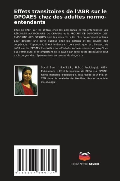 Effet de l'ABR sur les DPOAE chez les personnes normo-entendantes Les RÉPONSES AUDITORIALES DU CERVEAU et le PRODUIT DE DISTORTION DES ÉMISSIONS ACOUSTIQUES sont les deux tests les plus couramment utilisés pour détecter une perte auditive chez les enfants et les adultes non coopératifs. Cependant, il est intéressant de savoir quel est l'impact de l'ABR sur les DPOAEs lorsqu'ils sont effectués successivement et jusqu'à ce que l'effet dure. Il est important de le savoir car cette petite découverte peut avoir de grandes répercussions en termes de diagnostic.