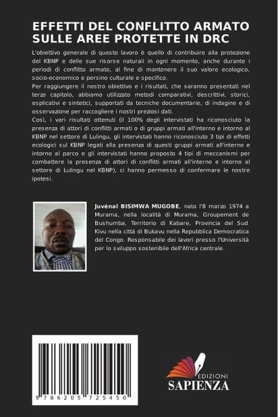 L'obiettivo generale di questo lavoro è quello di contribuire alla protezione del KBNP e delle sue risorse naturali in ogni momento, anche durante i periodi di conflitto armato, al fine di mantenere il suo valore ecologico, socio-economico e persino culturale e specifico.Per raggiungere il nostro obiettivo e i risultati, che saranno presentati nel terzo capitolo, abbiamo utilizzato metodi comparativi, descrittivi, storici, esplicativi e sintetici, supportati da tecniche documentarie, di indagine e di osservazione per raccogliere i nostri preziosi dati.Così, i vari risultati ottenuti (il 100% degli intervistati ha riconosciuto la presenza di attori di conflitti armati o di gruppi armati all'interno e intorno al KBNP nel settore di Lulingu, gli intervistati hanno riconosciuto 3 tipi di effetti ecologici sul KBNP legati alla presenza di questi gruppi armati all'interno e intorno al parco e gli intervistati hanno proposto 4 tipi di meccanismi per combattere la presenza di attori di conflitti armati all'interno e intorno al settore di Lulingu nel KBNP), ci hanno permesso di confermare le nostre ipotesi.